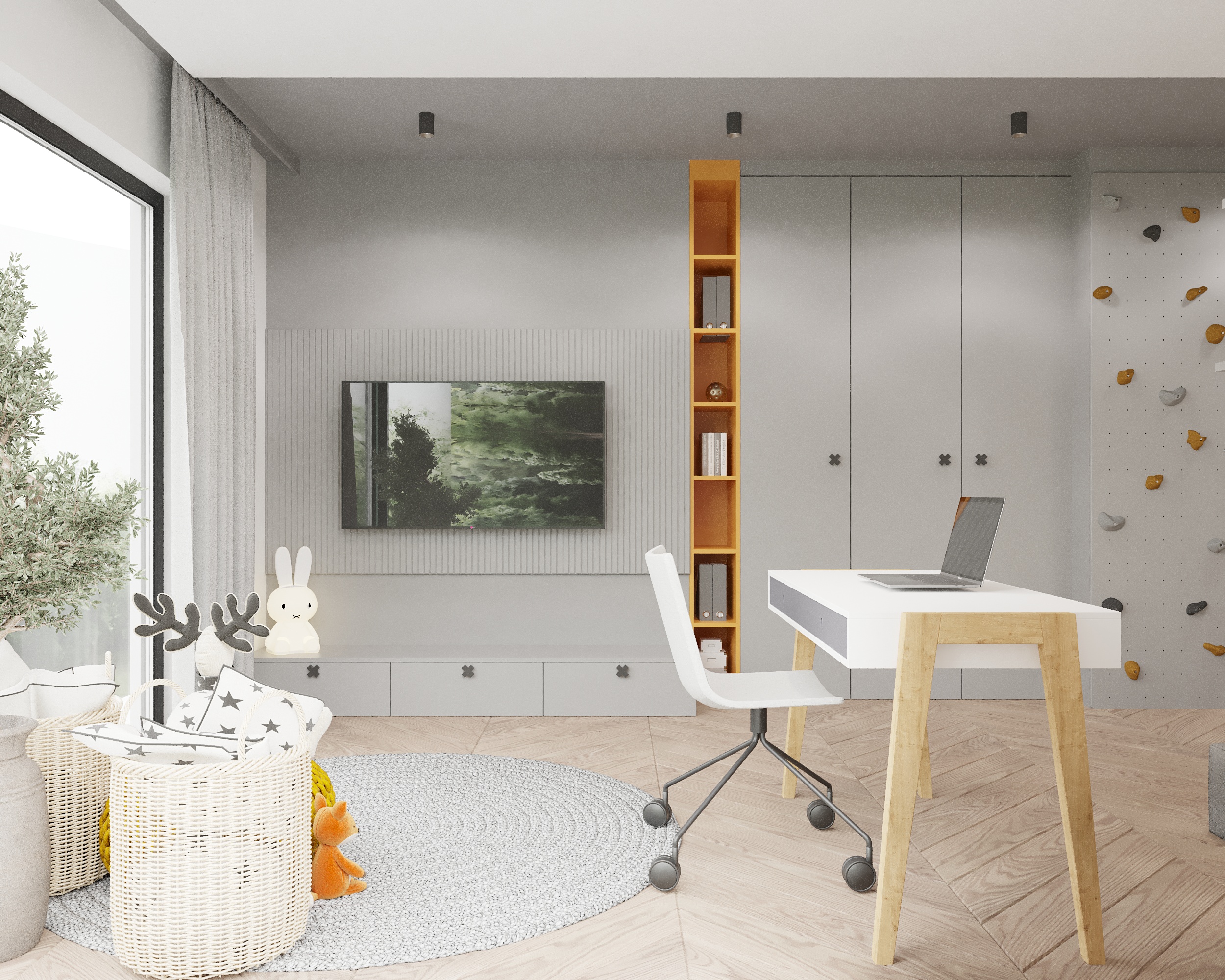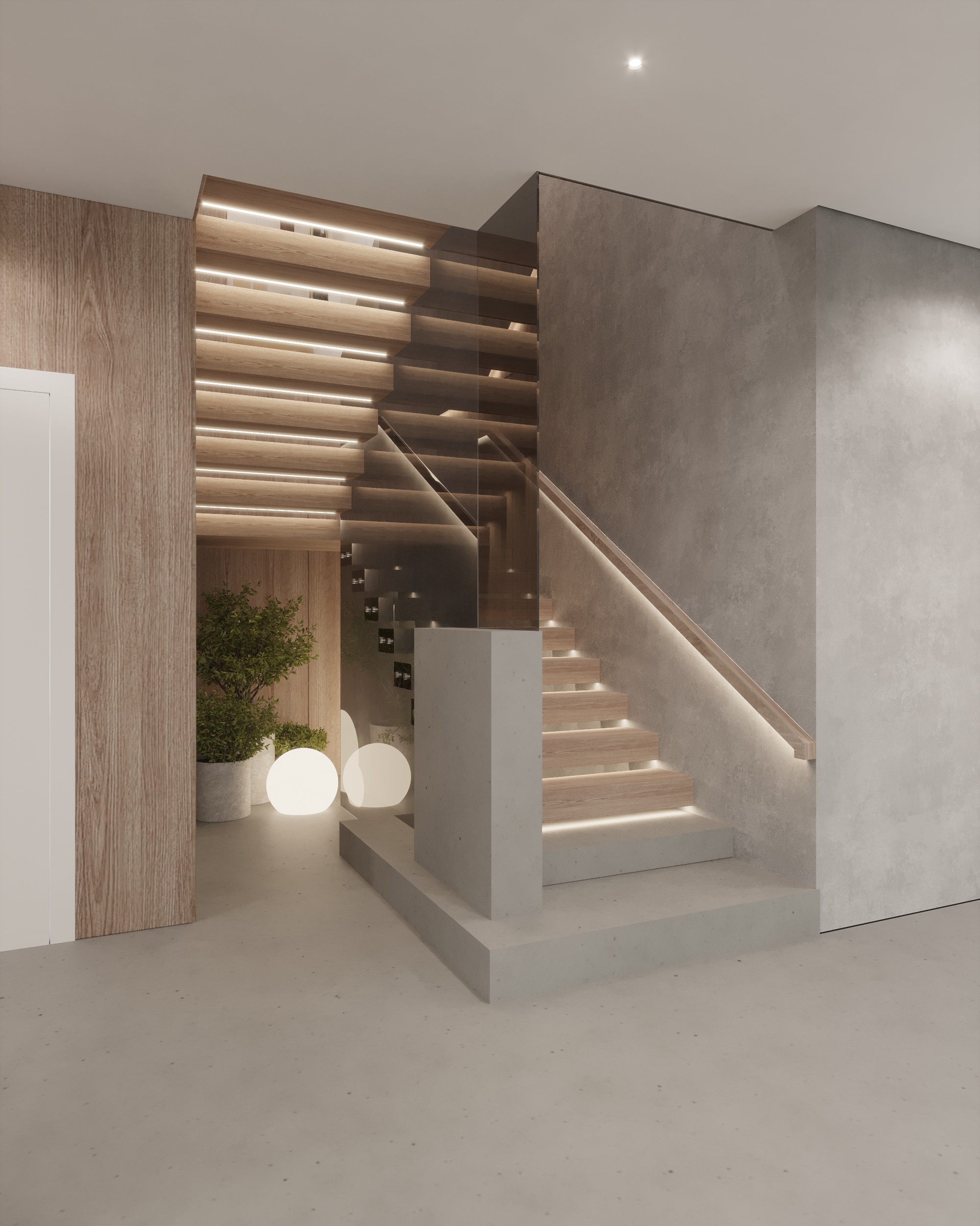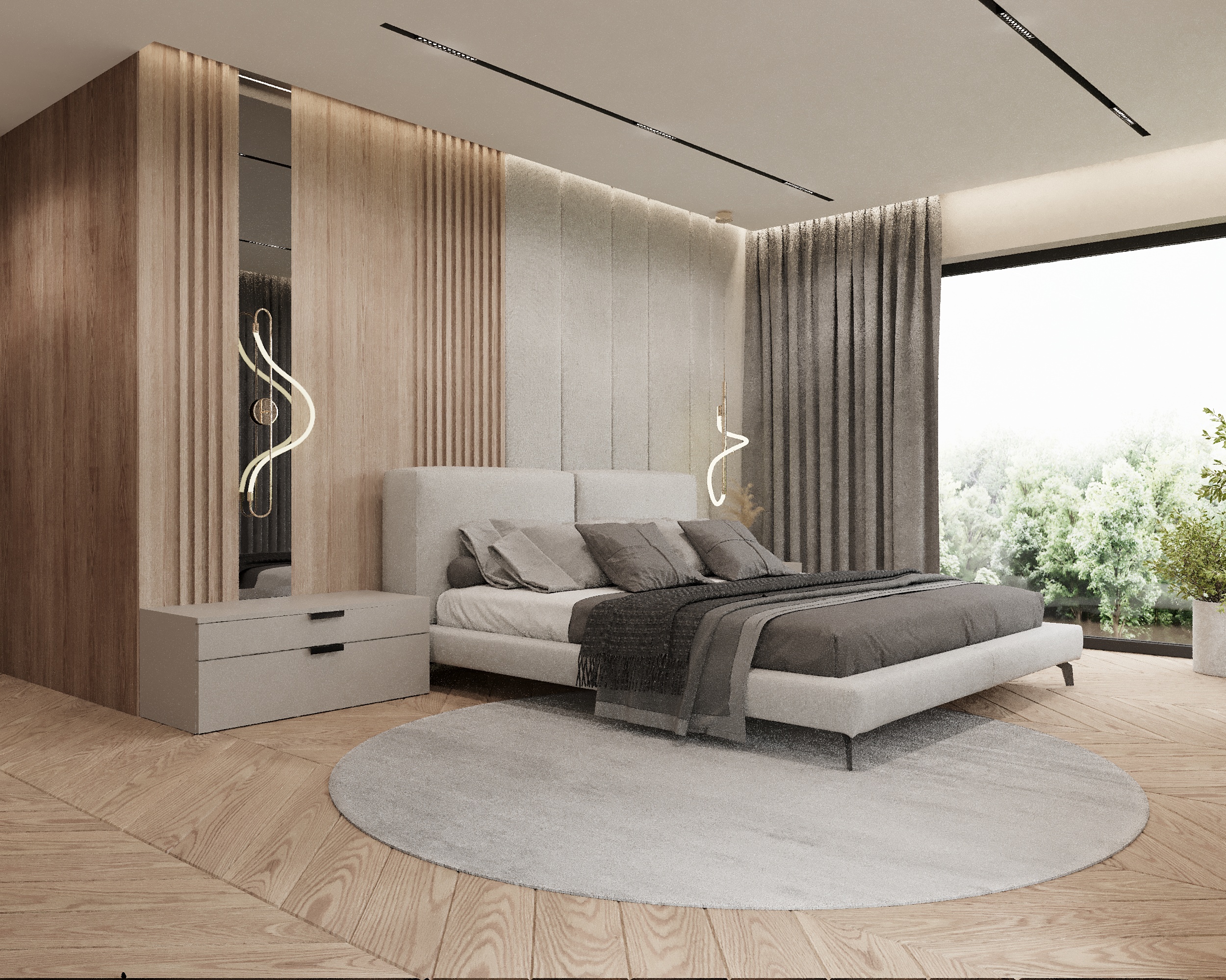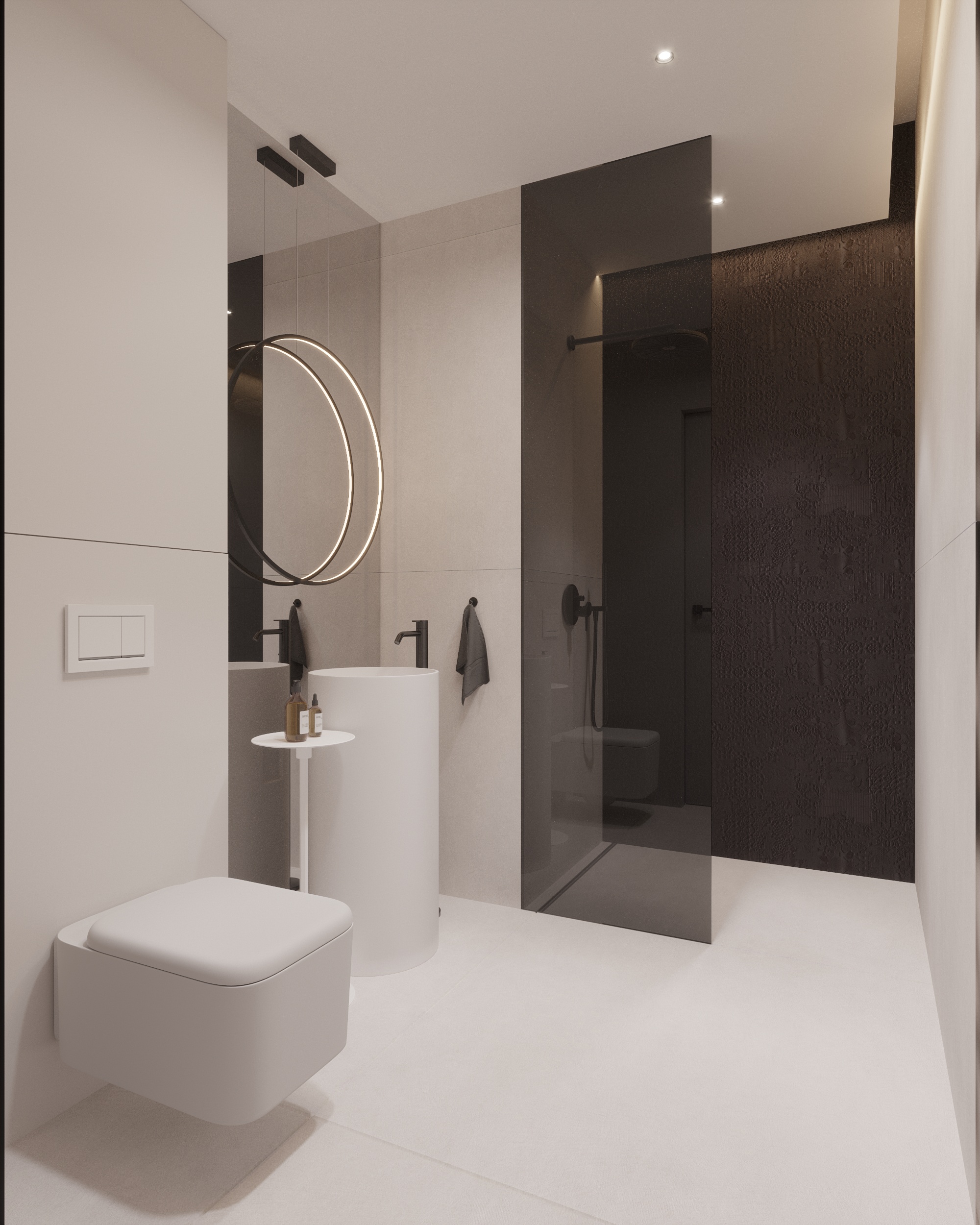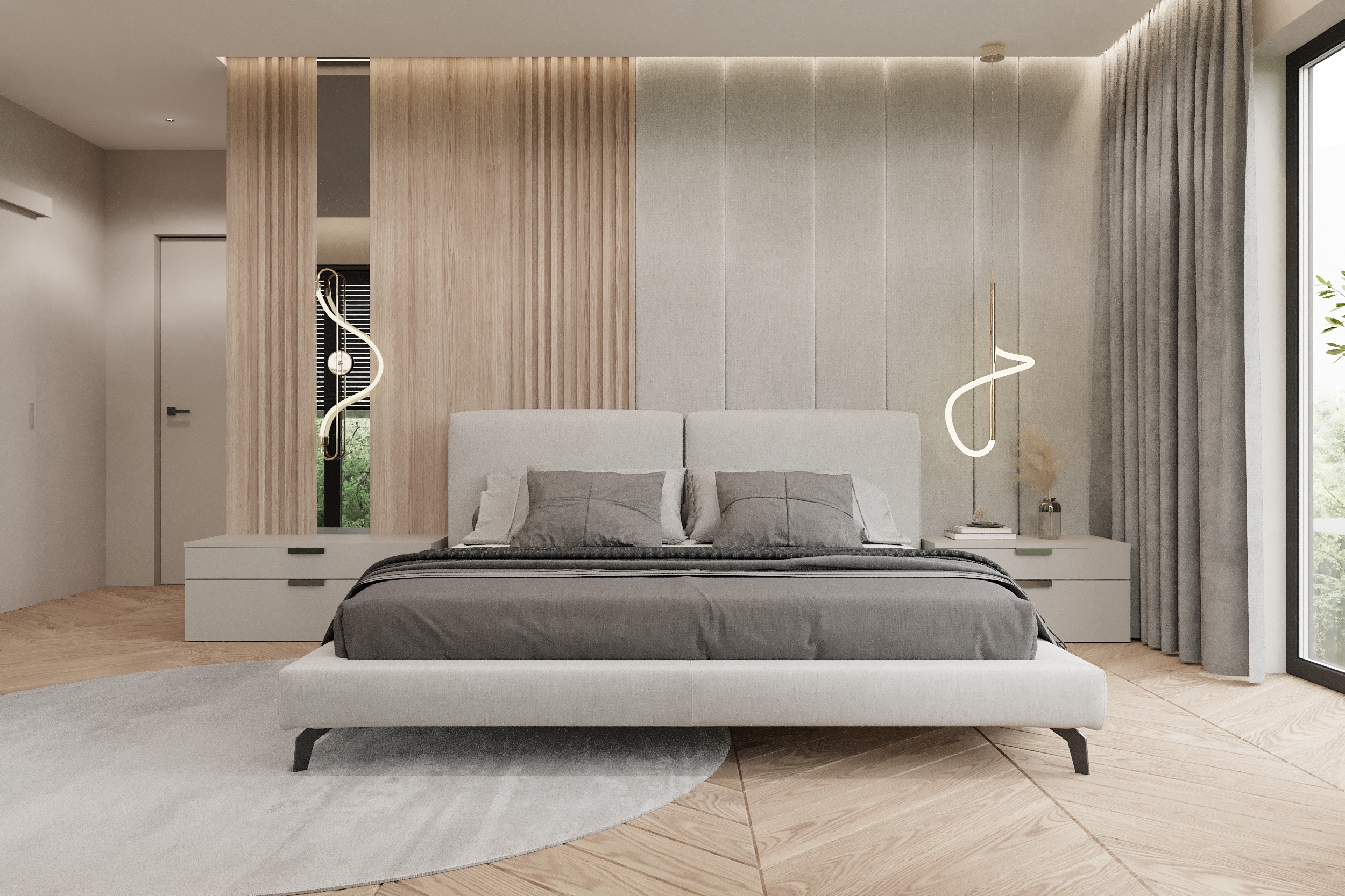 Wnętrze domu zachwyca swoją neutralnością oraz minimalizmem. Przestrzeń emanuje naturalnym urokiem i subtelnością, tworząc idealną atmosferę do życia. Dominują tu biel, beż oraz drewno o zgaszonym odcieniu. Jasne kolory, które odbijają światło, nadają pomieszczeniu przestronność. Przełamaniem są czarne meble i elementy wyposażenia, które stanowią równowagę dla jasnobeżowej bazy. Użyte tkaniny w projekcie pokazują fakturę i podkreślają miękkość obić. Proste oraz minimalistyczne linie mebli łączą się z funkcjonalnością i podkreślają elegancję całego wnętrza. Wnętrze emanuje ciepłem i spokojem, tworząc idealną harmonię i wyważoną przestrzeń do życia.